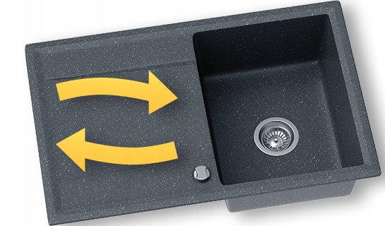 Dzięki tej funkcji zlewozmywak może być zamontowany z ociekaczem po prawej lub po lewej stronie. Decyzję można podjąć podczas montażu produktu.