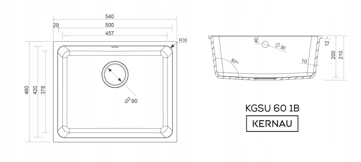 Zlewozmywaki Kernau wyróżnia duża głębokość komór. Wpływa to na ergonomię produktu i ułatwia jego codzienne użytkowanie.