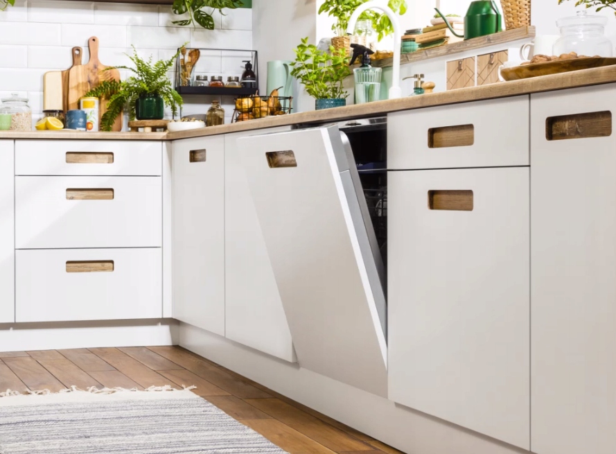 Dzięki zawiasom ułatwiającym montaż frontu zmywarki do zabudowy meblowej nie ma potrzeby specjalnego docinania i dopasowywania cokołu pod zmywarką. Teraz montaż zmywarki to czysta przyjemność!