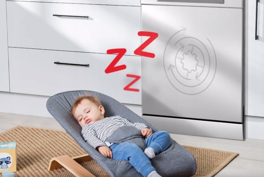 Cichy: Dzięki specjalnemu programowi zmywarka pracuje znacznie ciszej przy zachowaniu pełnej skuteczności.