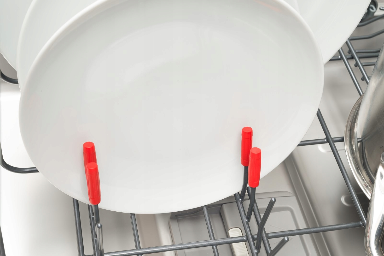 Możliwość przesuwania górnego kosza w górę i w dół, nawet przy pełnym załadunku, dzięki czemu zyskujemy miejsce na duże garnki.