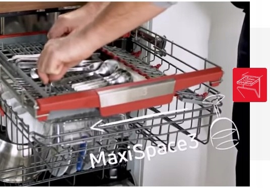 Trzeci, niezależny kosz ze specjalnymi przegródkami na sztućce, umieszczony w górnej części komory zapewnia dużą ergonomię użytkowania — już nie musisz się schylać, wyciągając sztućce. Zmywarka jest też bardziej pojemna, bo nie tracisz miejsca na pojemnik na sztućce w dolnym koszu, dzięki czemu możesz włożyć jeszcze więcej naczyń, a więcej naczyń = większe oszczędności.