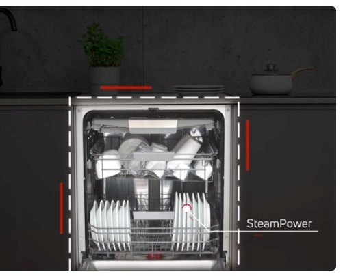 Chcesz, żeby Twoje naczynia były higieniczne czyste i lśniące? To możliwe dzięki SteamPower® — gorącej pary użytej na końcu cyklu zmywania, która redukuje ilość bakterii na naczyniach i w zmywarce, a także sprawia, że wyjmowane ze zmywarki naczynia lśniące i idealnie dosuszone.