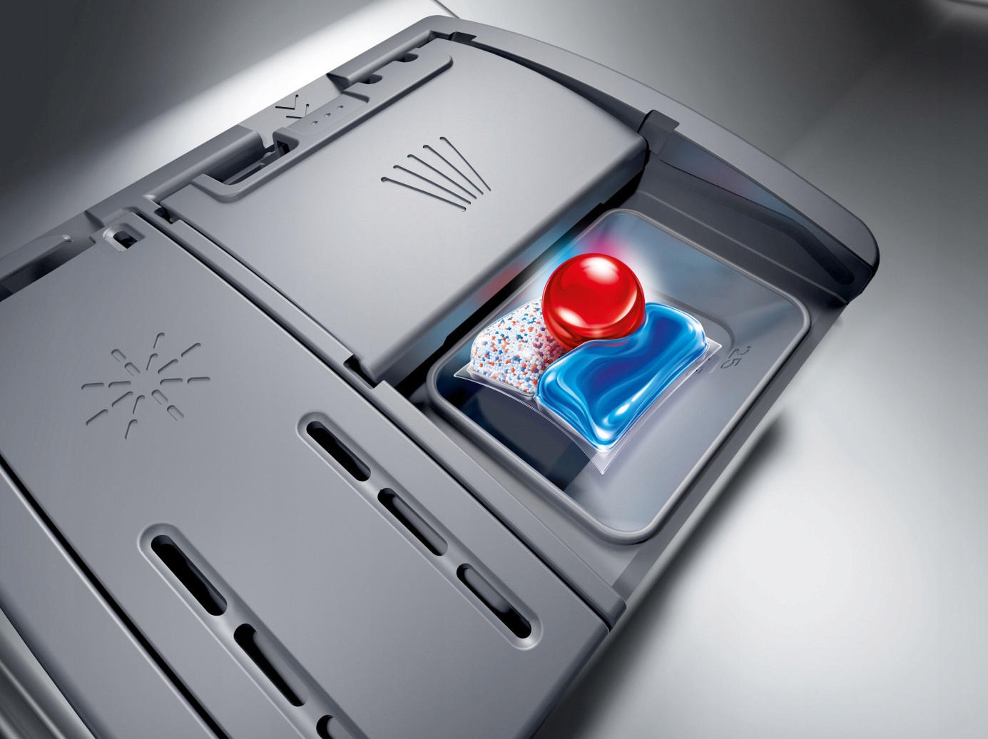 Wyjmowanie naczyń, które nie są wystarczająco suche lub są zbyt gorące bywa irytujące. Dzięki funkcji EfficientDry drzwi zmywarki otworzą się automatycznie pod koniec programu. To praktyczne rozwiązanie przyspiesza proces suszenia, zapobiega rekondensacji oraz delikatnie schłodzi naczynia, aby były gotowe do wyjęcia, bez konieczności ręcznego wycierania. Funkcja ta przyczynia się nie tylko do uzyskania lepszego efektu suszenia, ale również oszczędza energię.