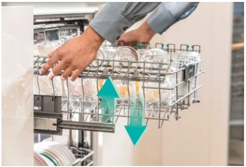 Kosze wyposażone są w podświetlane elementy ruchome oraz konfigurowalny układ kosza ułatwiający załadunek. Naprawdę prosty, dwupoziomowy system regulacji kosza pozwala zmieścić nawet największe garnki i talerze. Stelaż na talerze w dolnym koszu można łatwo złożyć. Sztućce mogą być perfekcyjnie zorganizowane na specjalnej tacy, gdzie są umieszczone oddzielnie, co zapewnia doskonałe rezultaty czyszczenia i suszenia. Każdy szczegół jest starannie zaprojektowany, aby zapewnić jak najłatwiejszą obsługę.