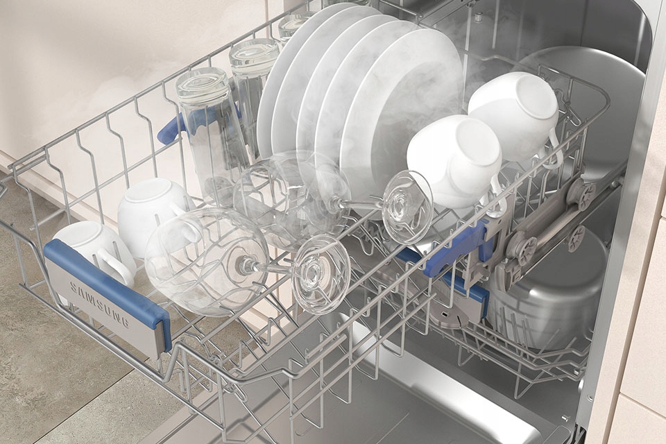 Chcesz oszczędzać wodę i prąd, nie rezygnując z czystych naczyń? Zmywarka Samsung z funkcją połowy załadunku pozwala Ci myć tyle, ile potrzebujesz, bez kompromisów.