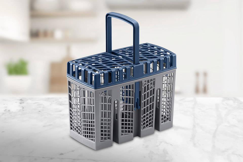 Zapomnij o układaniu sztućców! Wystarczy wrzucić je do koszyka i gotowe. Po zmywaniu wygodnie przeniesiesz cały koszyk i szybko przełożysz czyste sztućce do szuflady.