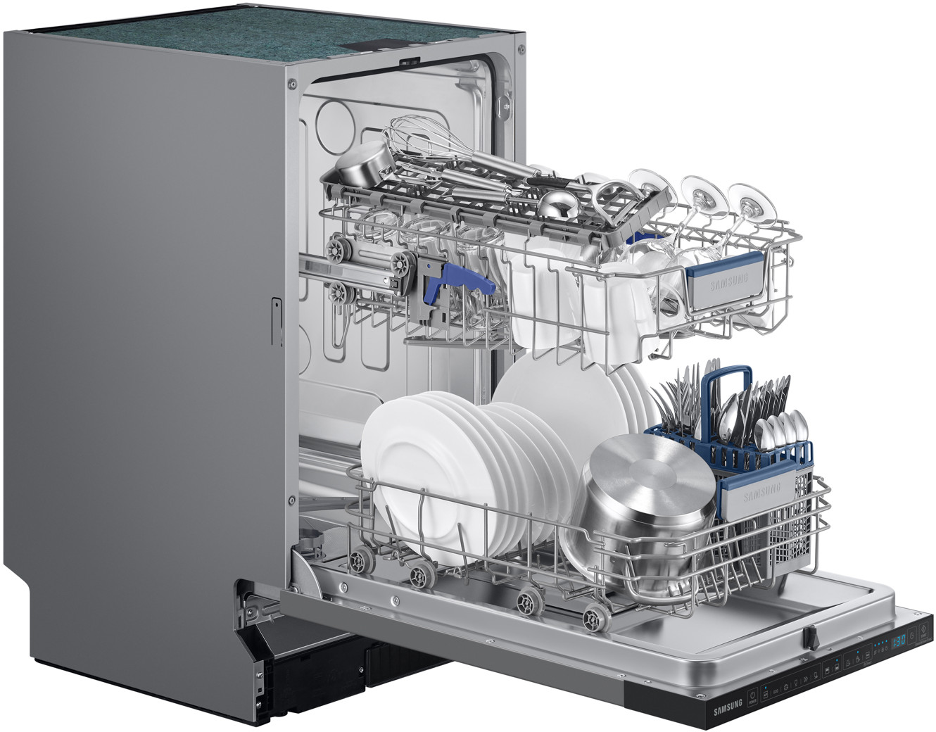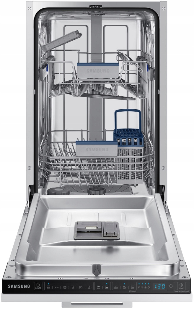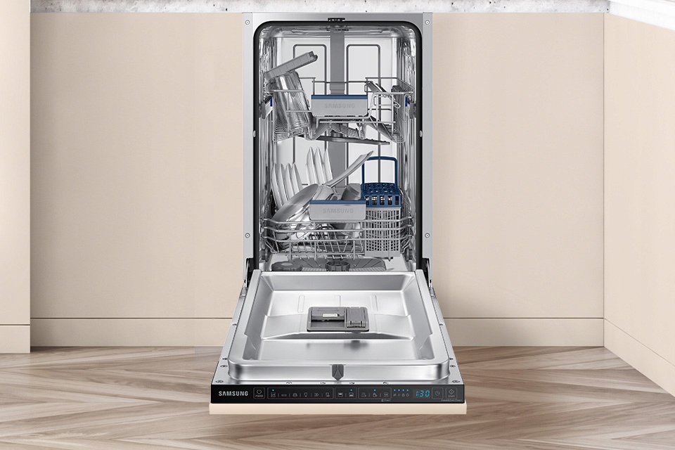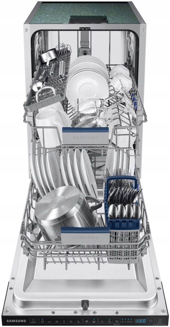 Poznaj zmywarkę do pełnej zabudowy Samsung DW50DG431B00ET. Funkcjonalna i kompaktowa (45 cm) jest łatwa w obsłudze, więc mycie naczyń stanie się czystą przyjemnością.