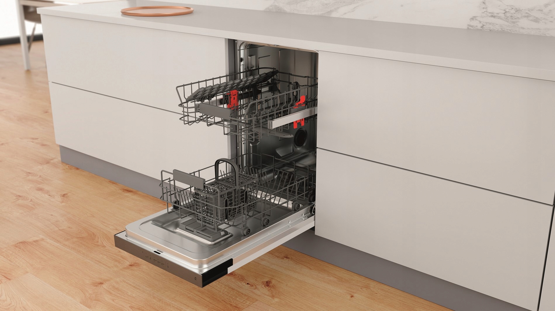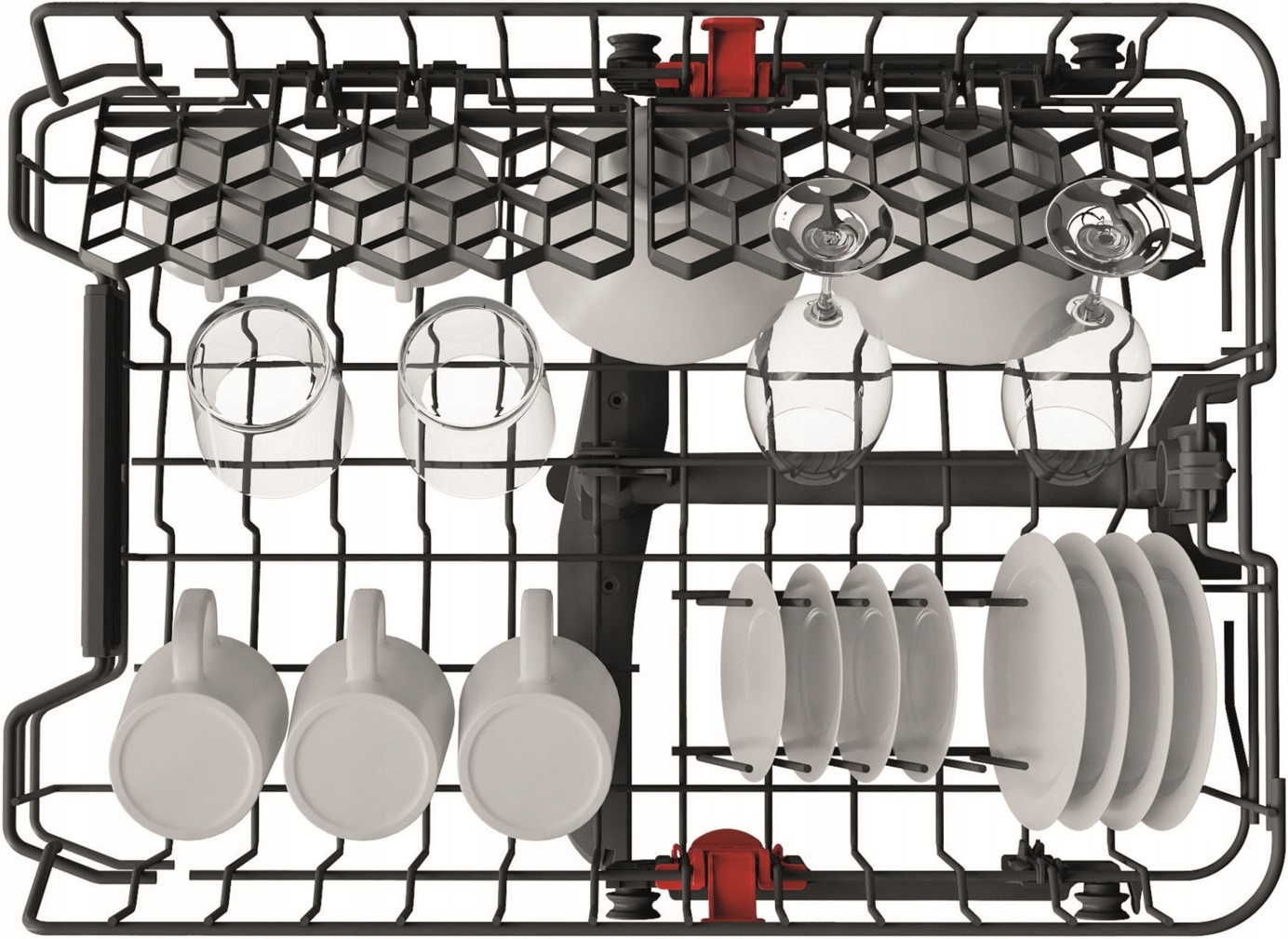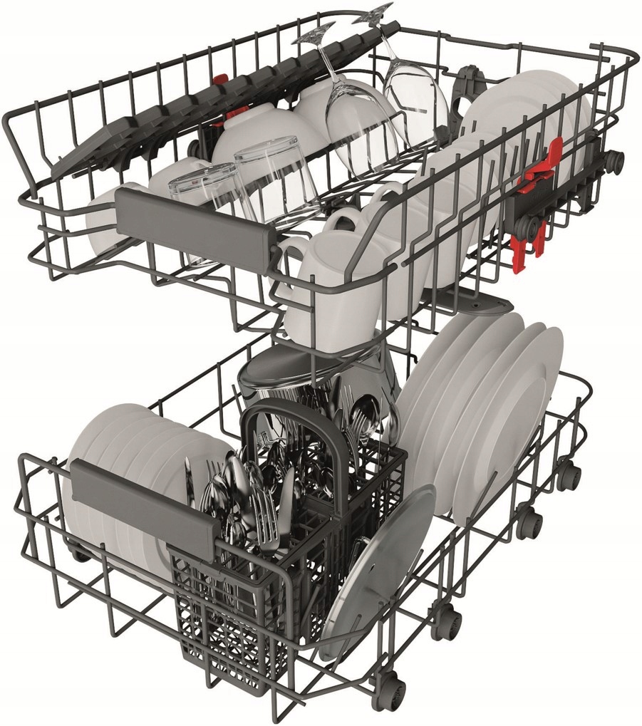 Idealne zarządzanie przestrzenią. Zwiększaj, zmniejszaj lub modyfikuj przestrzeń wewnątrz zmywarki tak, jak chcesz, dzięki modułowym koszom i składanym elementom.