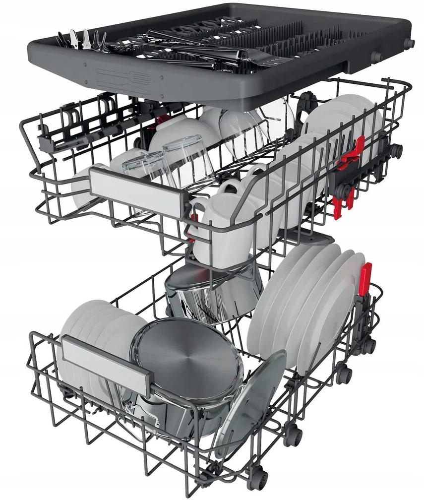 Rewolucja w zarządzaniu przestrzenią. Unikalne wzornictwo ExtraSpace pozwala na pionowe układanie garnków i patelni w dolnym koszu, dając Ci miejsce na 10 dodatkowych talerzy. Oszczędzaj przestrzeń, oszczędzaj czas.
