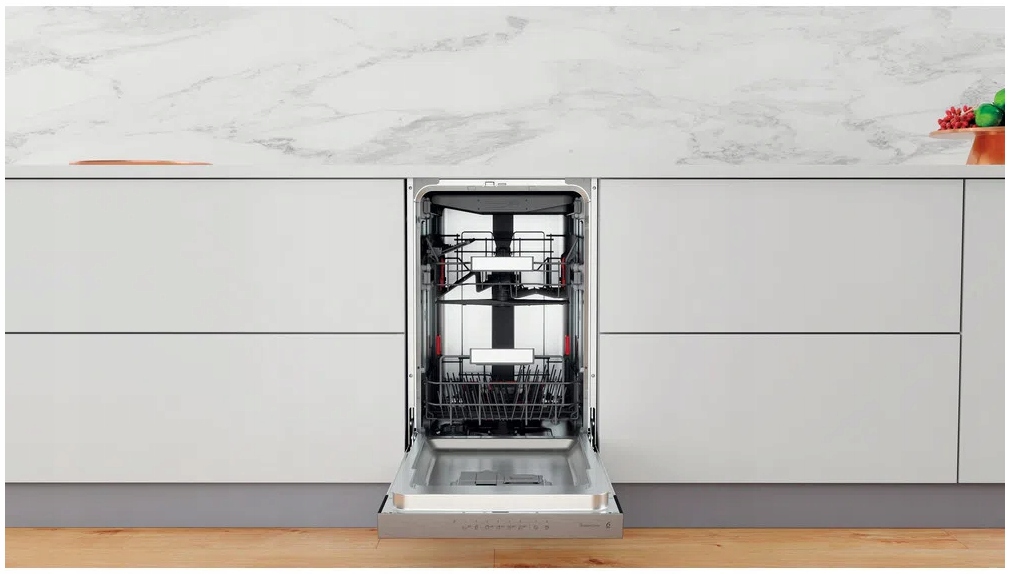 Wnętrze zmywarki wykonane jest ze stali nierdzewnej, dzięki czemu Twoje naczynia są zawsze błyszczące, a komora urządzenia perfekcyjnie czysta.