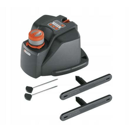 Innowacyjny GARDENA Comfort zraszacz AquaContour automatic to komfortowy zraszacz do nawadniania indywidualnie wybranych obszarów ogrodu o praktycznie dowolnym kształcie i powierzchni do 350 m². Dzięki możliwości programowania zasięgu wyrzutu łatwo zrasza każdy zakątek ogrodu. Nawadnianie dużych powierzchni jest wyjątkowo proste - można zaprogramować 2 różne kontury obszaru nawadniania, np. z przodu i z tyłu domu, i w dowolnej chwili je uaktywniać. Możliwość zapisania w każdym programie do 50 punktów konturu obszaru nawadniania. Pulpit z przyciskami zabezpieczonymi folią przed zabrudzeniem, z czytelnymi instrukcjami dla osoby obsługującej. Programowanie zraszacza jest proste. Główka zraszacza z dyszami wykonanymi z miękkiego tworzywa sztucznego zapewnia równomierne nawadnianie. Pierścienie regulacyjne umożliwiają indywidualne ustawienie nawadnianego sektora od 25° do 360°. Zasięg wyrzutu można programować w zakresie 2,5 do 9 m przy ciśnieniu roboczym 2 bar i do 10,5 m przy ciśnieniu roboczym 4 bar. Dwa praktyczne markery umożliwiają stabilne i precyzyjne umiejscowienie zraszacza na zaprogramowanym obszarze nawadniania. Urządzenie jest także wyposażone w dwie szpilki, które zapewniają pewne przytwierdzenie zraszacza do ziemi.