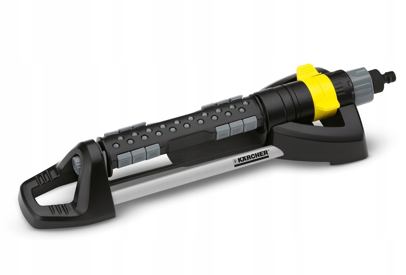 Innowacyjny zraszacz z regulowanym wydatkiem wody (0-maks.). Szerokość spryskiwania można zmniejszyć poprzez wyłączenie części dysz. Wyposażony w zdejmowane szpile. Wśród licznych innowacji, charakteryzujących tą grupę produktów szczególnie warte uwagi jest proste rozwiązanie stosowane w zraszaczach oscylacyjnych Kärcher. Polega ono na wyposażeniu urządzenia w specjalne przesłony umożliwiające zmianę ustawień zraszania bez ryzyka ochlapania wodą osoby obsługującej. Zraszacz współpracuje z systemem szybkozłącza, dlatego jest łatwy w podłączeniu do węża ogrodowego.