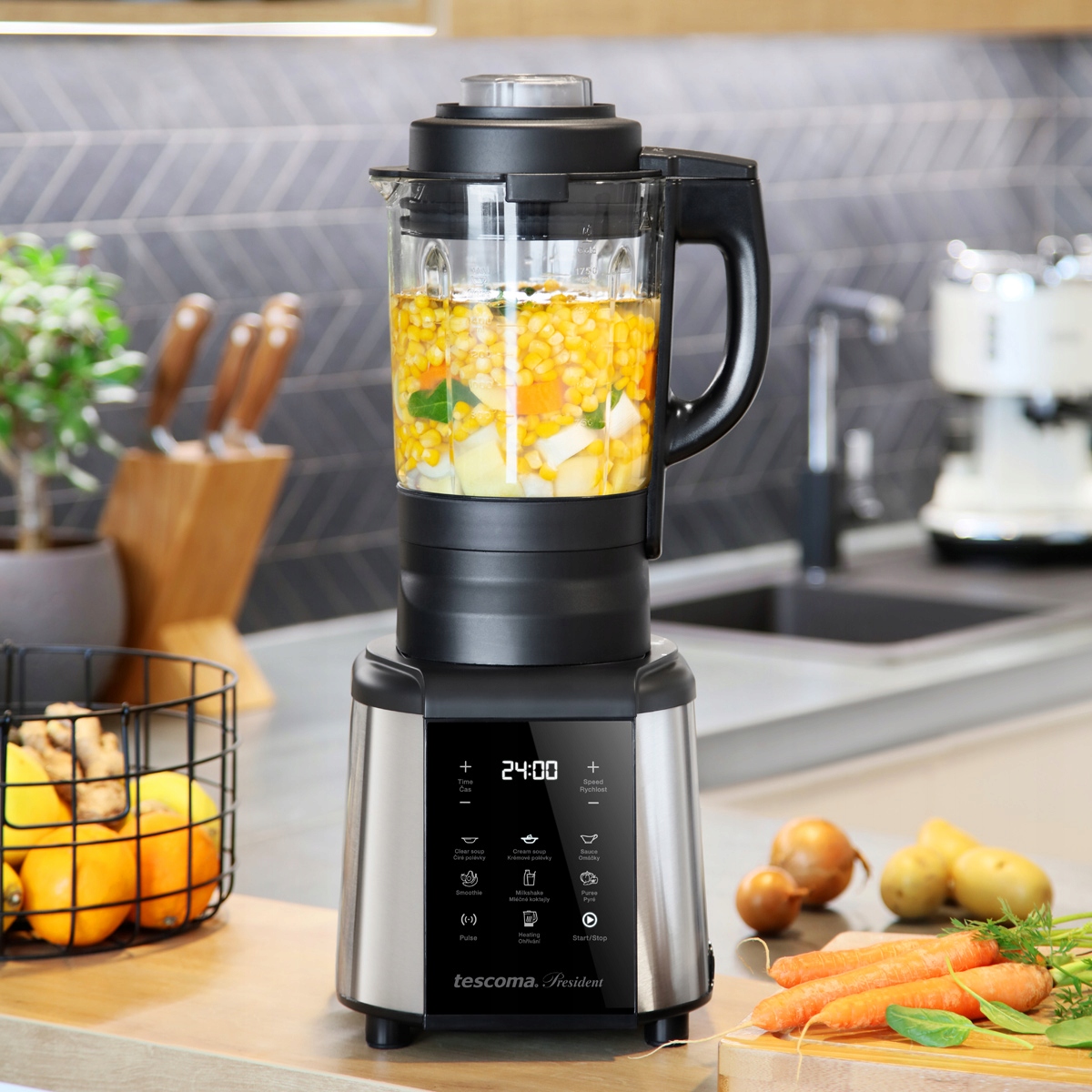 Wyjątkowo efektywny zupowar PRESIDENT jest całkowicie automatyczny – wystarczy, że włożysz składniki do szklanego naczynia, wybierzesz odpowiedni program, a zupowar zajmie się dalej wszystkim sam.